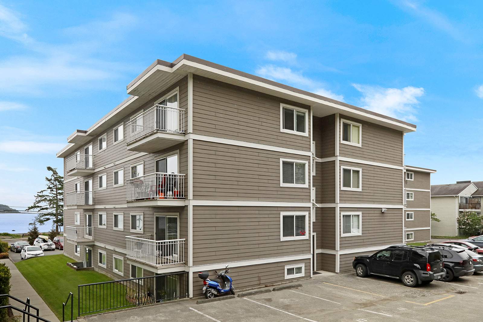 Regal perfectly describes this semi-waterfront property…nestled next to the Waterside building, many of the units offer unobstructed ocean views. With a mix of both 1 and 2 bedroom units this is an ideal location for a couple, retired or established single person that wants to be close to town while being able to access nearby beaches and the Rotary sea walk.