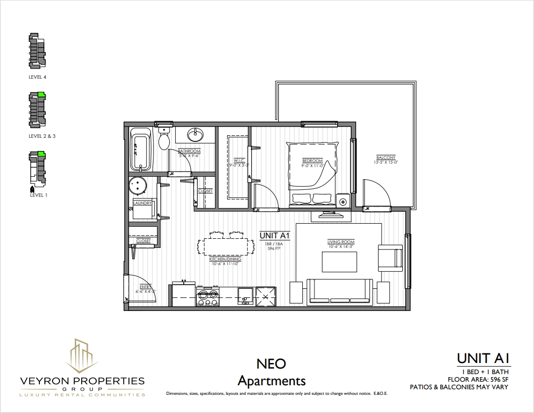 Neo offers rentals to fit many different budgets with a variety in size of apartments. We have also included a variety of amenity spaces including a co-workspace, fitness room and a large outdoor deck located on the 4th floor which offers residents a place to gather in a space that offers the best views the complex has to offer.